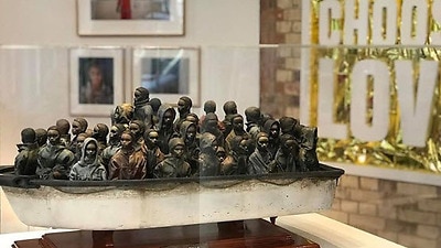 Banksy Boat Refugees Raffle Choose Love Urdesignmag - According to the international organization for migration, more than 7,600 migrants have been intercepted so far this.